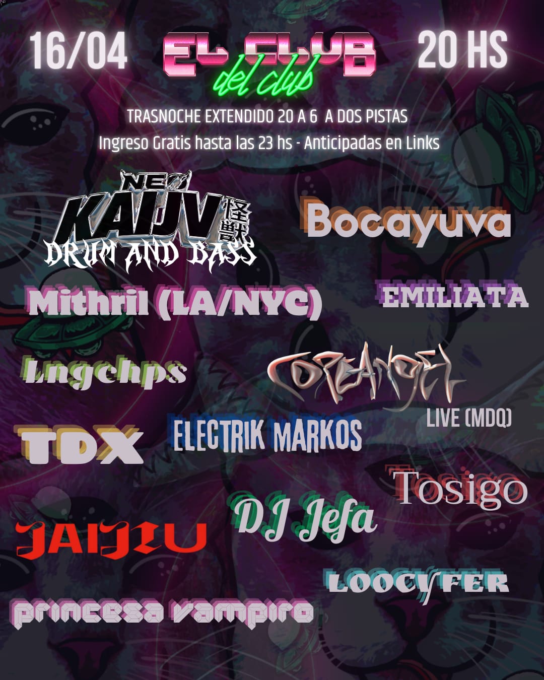 16 de abril CLUB TRASNOCHE – 2 PISTAS – 10 HORAS – 17 ARTISTAS 😱
