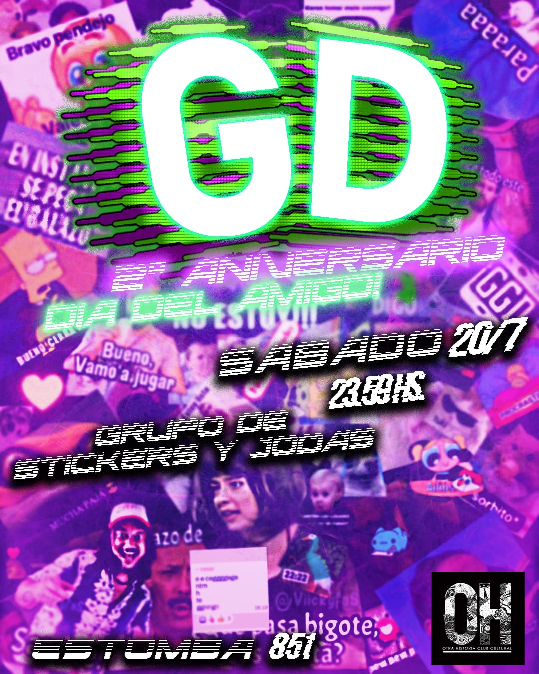 Día del Amigo! Asi es, el grupo de WhatsApp de Stickers y Jodas Cumple 2 años y lo festeja en casita, @otrahistoriaclubcultural.