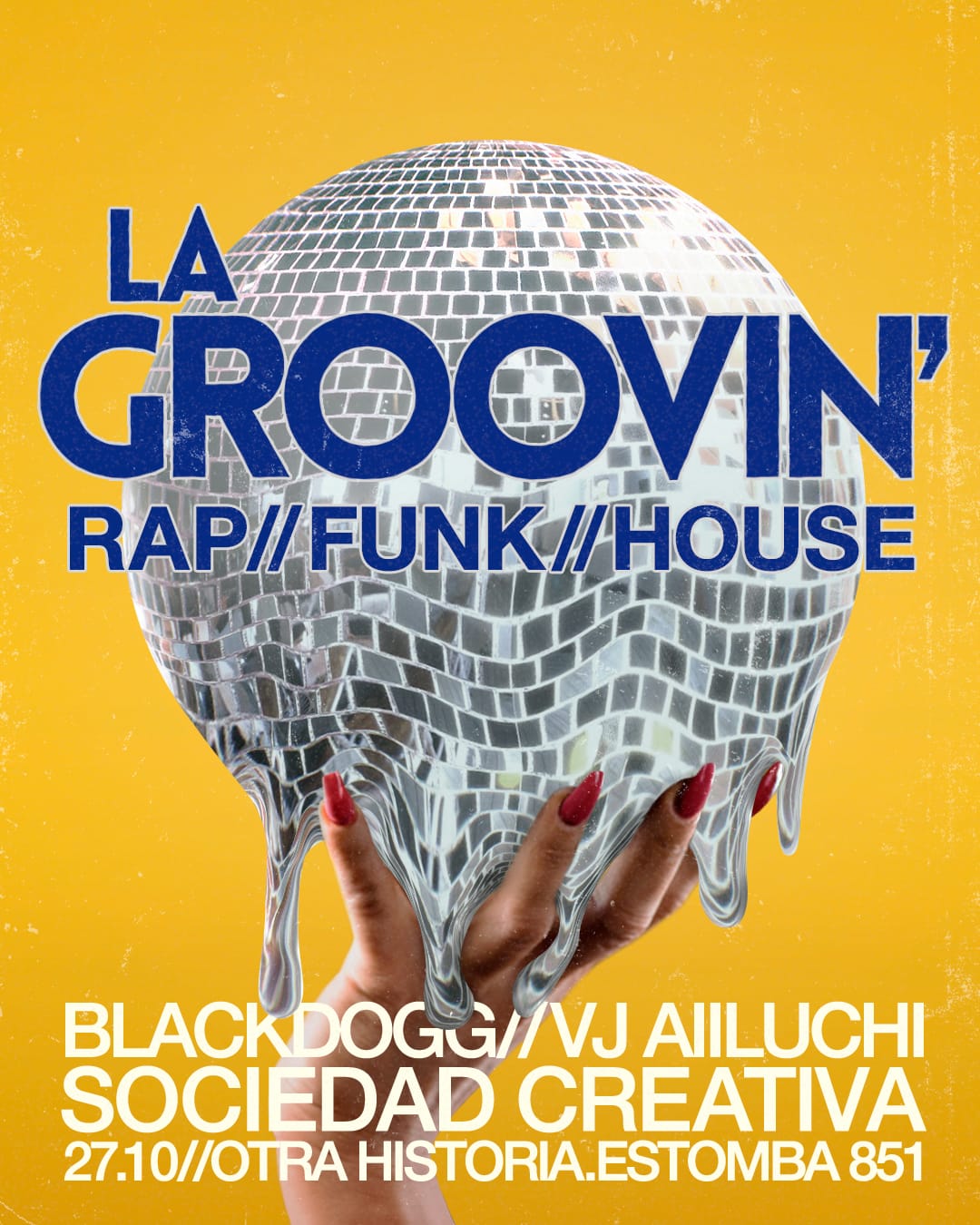 Bienvenidxs a La Groovin! Una fiesta de tres géneros musicales: rap, funk y house. Abren la noche nuestros amigos de Sociedad Creativa (@sociedadc), trayendo barras y beats desde lo profundo del under del rap argentino. A partir de la 1.30 Dj Blackdogg (@blackdogg___) se encargará de llenar la pista de groove mixeando música funk, disco y diversas variantes del house. Aiiluchi (@aiiluchi) va a estar a cargo de las visuales. Nos vemos el 27 grooverxs!